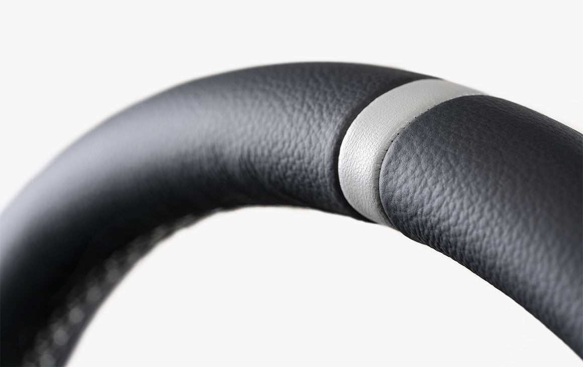 Le volant ClubSport 320 se distingue par son diamètre de 320 mm qui permet une prise en main confortable et précise, idéale pour une immersion totale. Sa conception repose sur une structure en aluminium à trois branches assurant légèreté et robustesse, tandis que l'application d'un cuir véritable assure une sensation agréable au toucher tout en renforçant l'aspect haut de gamme du produit.